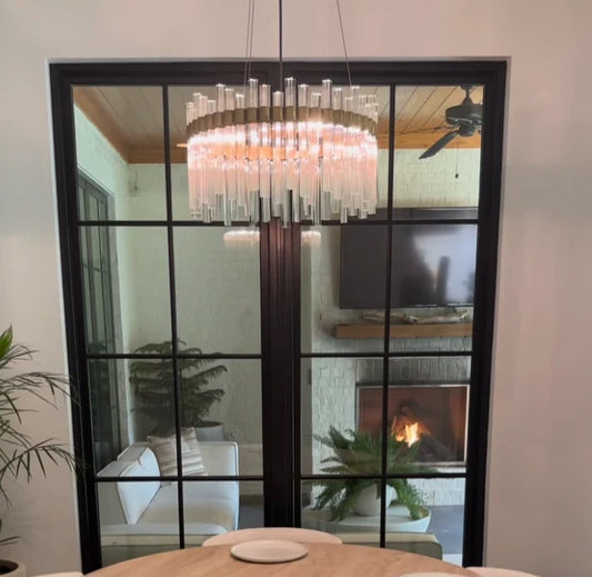 Modern Round Glass Rods Chandelier for Living/Dining Room/Bedroom