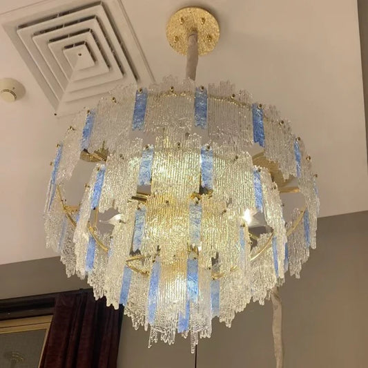 Light Luxury 5-Tier Round Pink/Blue Crystal Chandelier for Living Room/Bedroom