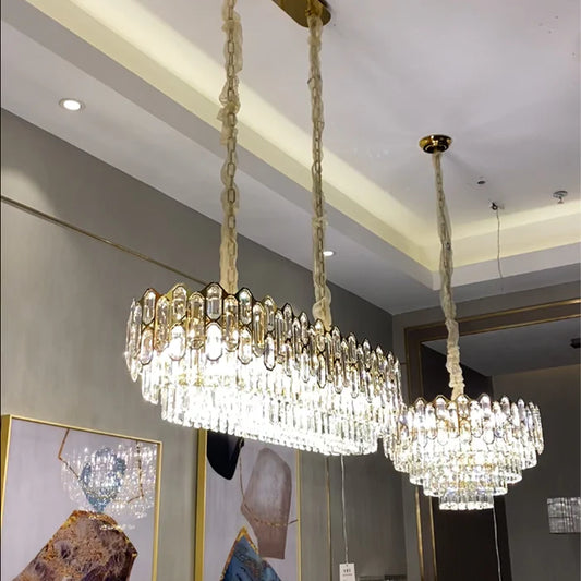 Modern Light Luxury Round/Rectangle Crystal Chandelier Set For Living Room/Dining Room/Bedroom