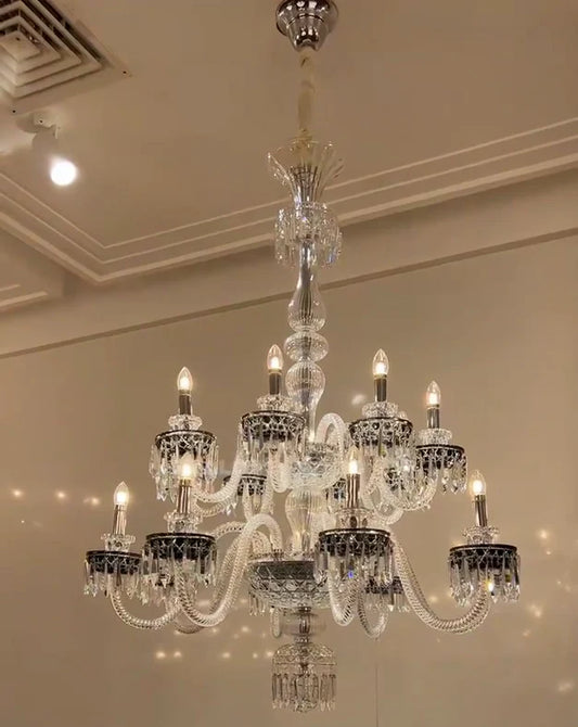 Oversized Transparent Crystal Tiered Chandelier Suit for Living/Dining Room/Bedroom