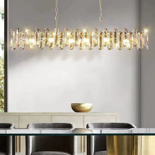 Ice Clear Round and Long Crystal Chandelier For Living Room Ceiling Lamp for Dining / Bedroom Hallway Light