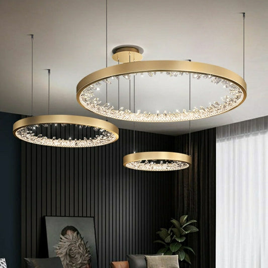 Gold/ Black 1/ 2/ 3 Rings Crystal Chandelier Modern LED Ceiling Pendant Lighting Fixture For Living/ Bedroom