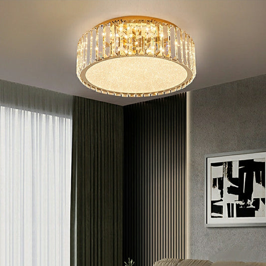 Hotel Gold Flush Mount Ceiling Lighting Fixture Round Crystal Chandelier For Bedroom