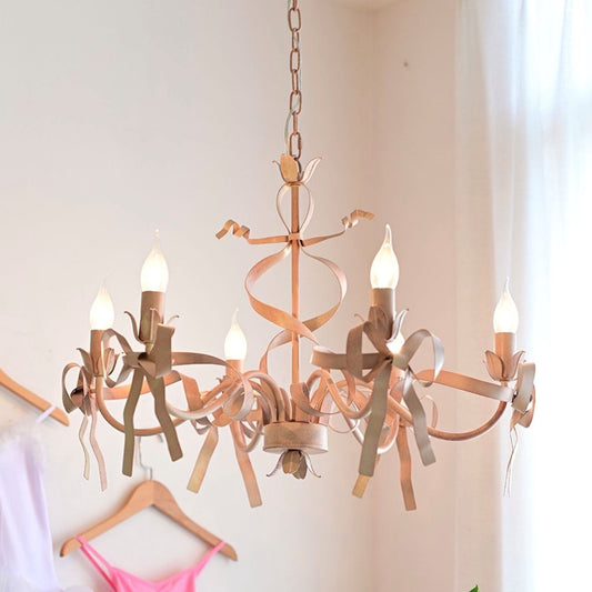 Italian Style Princess Beautiful Pinkish Bows Stylish Chandelier Modern Artistic Girls Room Pink Bedroom Nursery Room