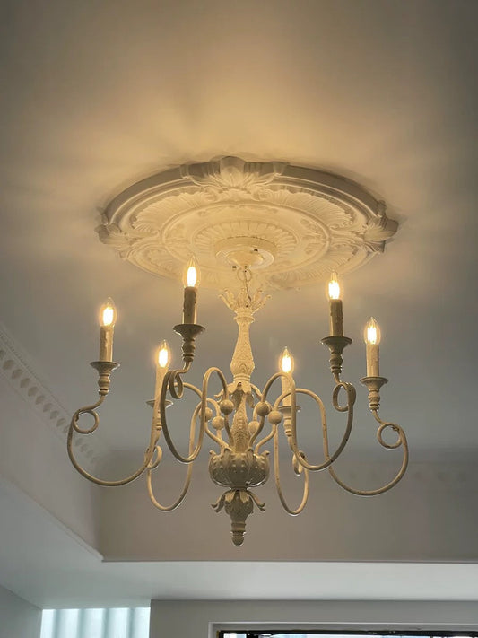 French Vintage Country Style White Rustic Iron Art Chandelier 6/8 Lights for Dining Room Bedroom Living Room