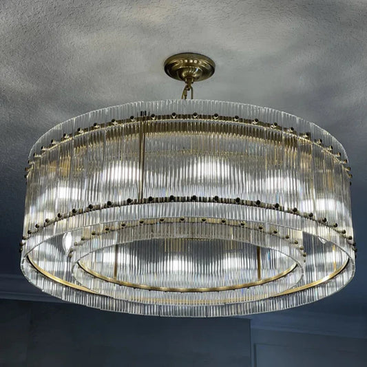 Modern 2-Tier Round Handmade Fluted Glass Panels Chandelier