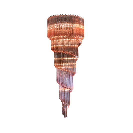Mid-Century Modern Pink/Transparent Glass Cascading Spiral Chandelier