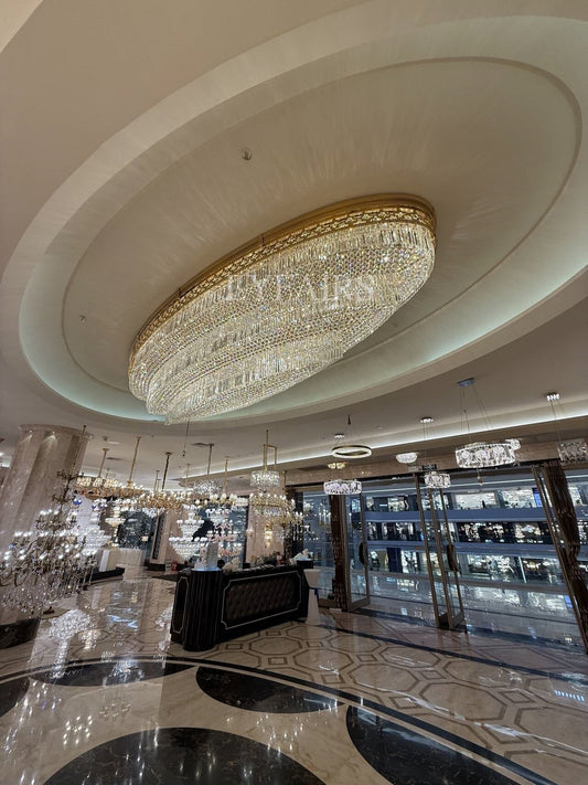 Gold Era Flush Mounted Oval Crystal Chandelier for Hotel/Restaurant/Villa