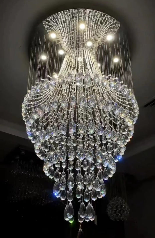Modern Ceiling Fixture Light Raindrop Crystal Chandelier for Foyer/Entryway/Staircase