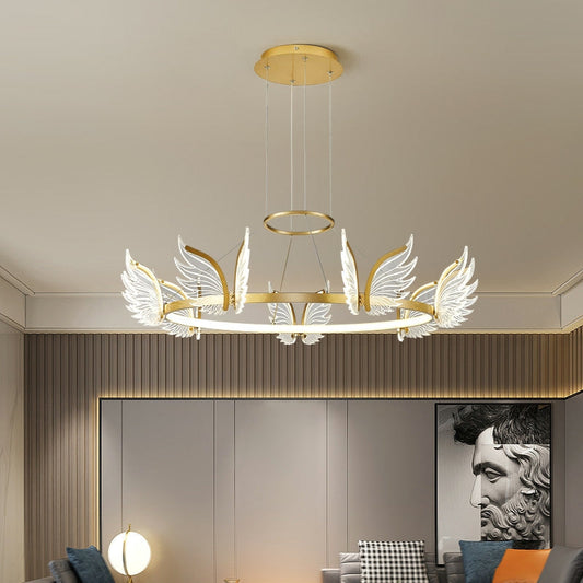 Modern Living Room LED Chandelier Two Rings Butterfly Entryway Ceiling Pendant Lighting Fixture In Gold/ Black Finish