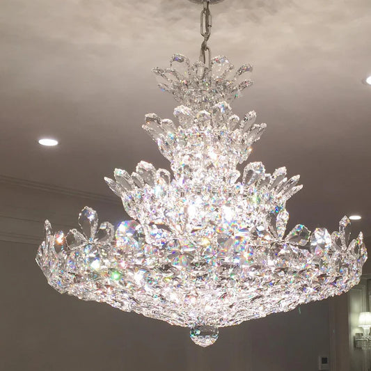 Luxury Empire Floral Crystal Chandelier With 4 Layers Modern Light Fixture for Foyer/ Living Room