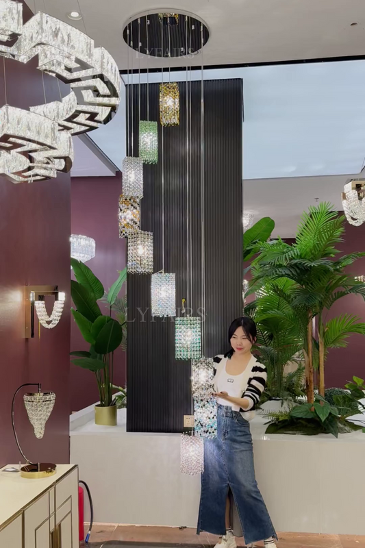 Modern Floating Colorful Crystal Chandelier for High Ceilings