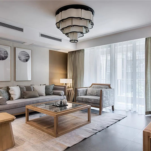 Modern Round/Rectangular/Funnel Smoke Glass Chandelier for Low-ceiling