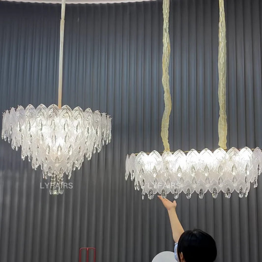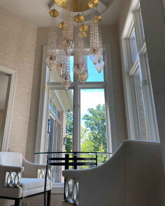 Modern Glass Shell Crystal Raindrop Chandelier Set for Low-ceiling