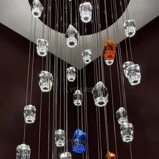 Modern Floating Clear/Blue/Amber Irregular Crystal Chandelier for High-ceiling