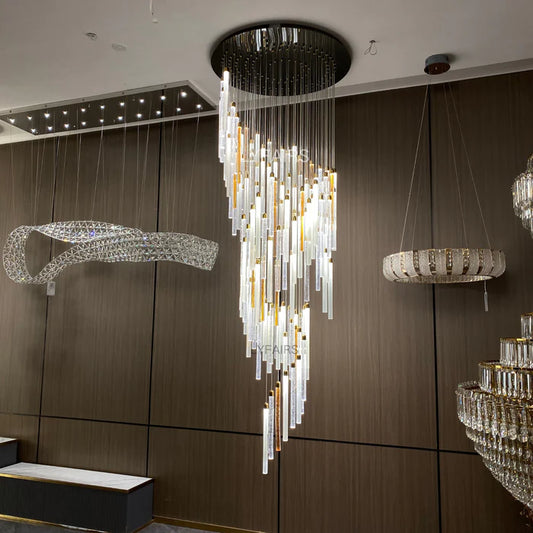 Modern Floating Spiral Crystal Chandelier for High-ceiling