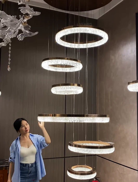 Modern Minimalist Rings Round/Oval Crystal Chandelier for High/Low-ceiling