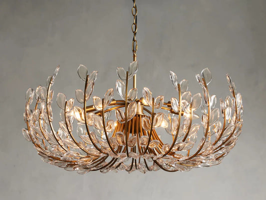 Modern Brass Branch Glass Leaves Chandelier for Low-ceiling