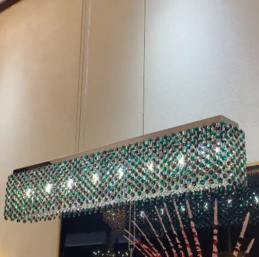Modern Rectangular Green/Smoky Grey Crystal Chandelier for Dining Room