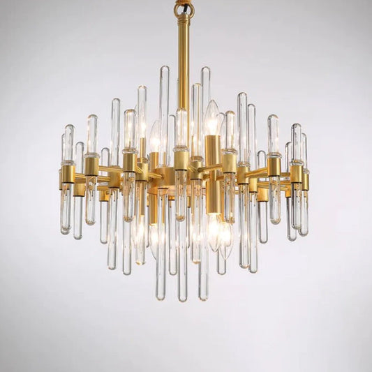Modern Minimalist Gold Branch Clear Crystal Rods Pendant Chandelier for Living/Dining Room