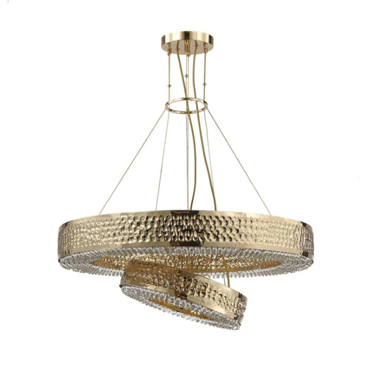 Modern Light Luxury 2-Tier Round Brass Crystal Ring Chandelier for Living/Dining Room