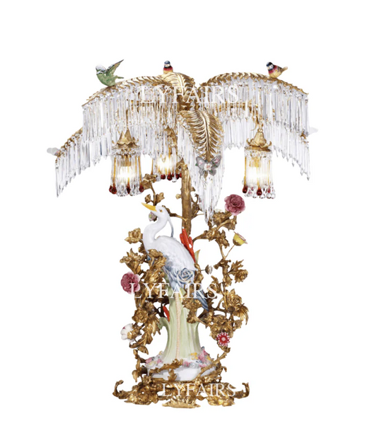 LYFAIRS × FH&Home Avian Melody Chinoiserie Crystal Fringed Table Lamp