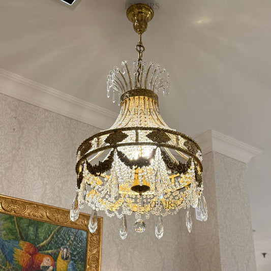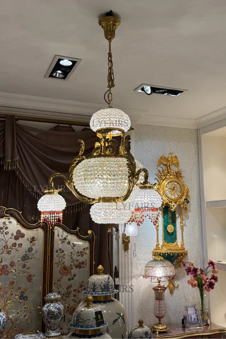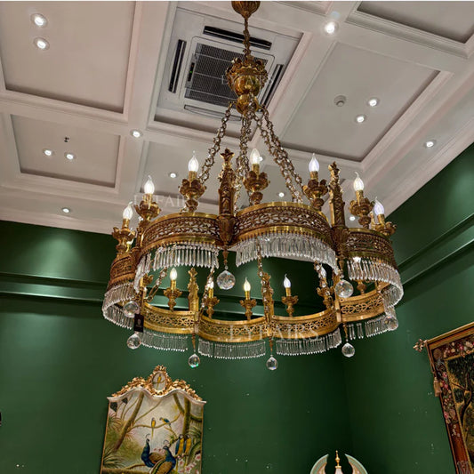 LYFAIRS x FH&Home Brass Crown Crystal Tassel Chandelier