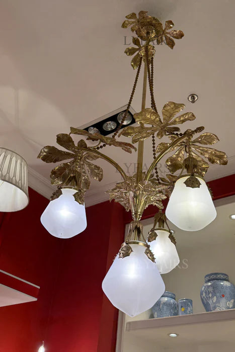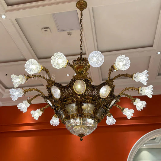 LYFAIRS x FH&Home Baroque Floral Glass Chandelier with Exquisite Brass Carved Vines