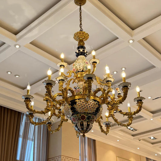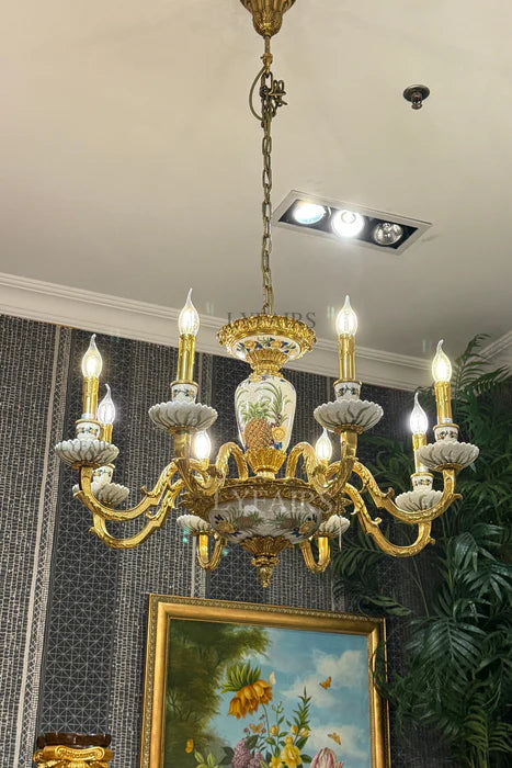 LYFAIRS x FH&Home Baroque Hand Painted Porcelain Brass Chandelier