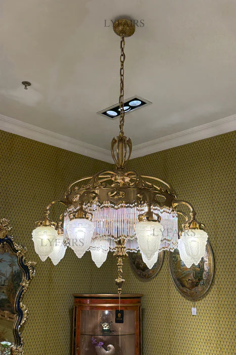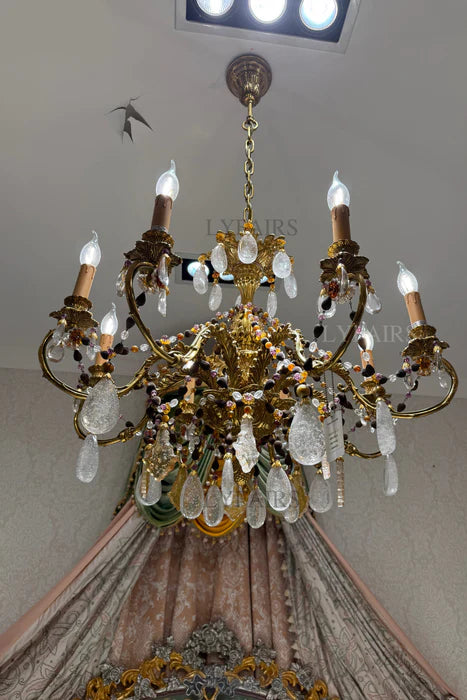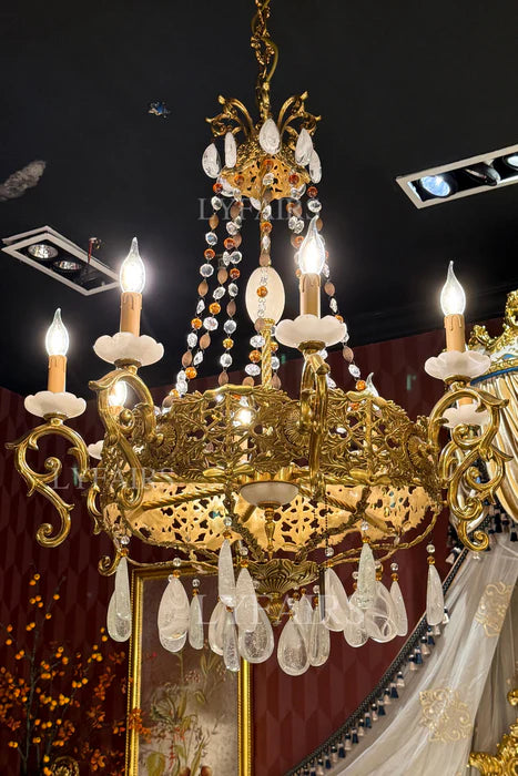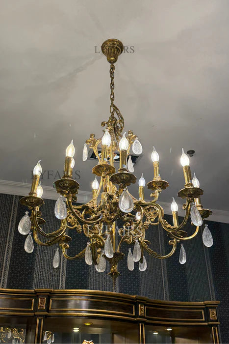 LYFAIRS x FH&Home Luxurious Baroque Droplet Brass Chandelier