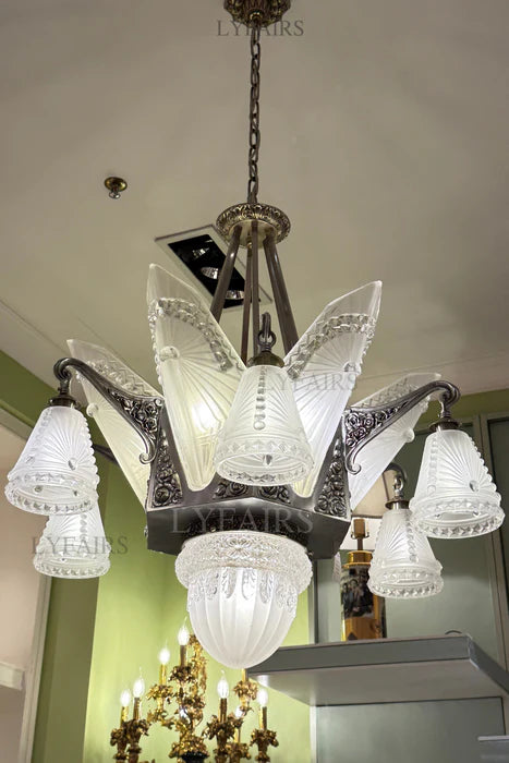 LYFAIRS x FH&Home Baroque Elegant Floral Glass Chandelier