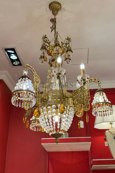 LYFAIRS x FH&Home Gilded Baroque Splendor in Amber Flame Crystal Chandelier