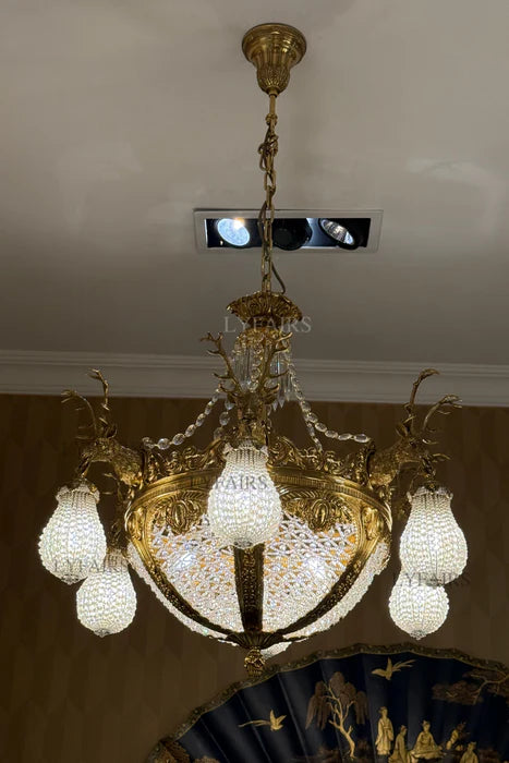 LYFAIRS x FH&Home Baroque Brass Deer Crystal Chandelier for Palace/Hotel
