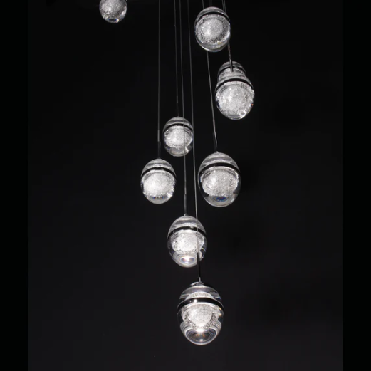 Flush Mount Extra Long Glass Bubble Pendant Chandelier for Foyer/Living Room/Stairs
