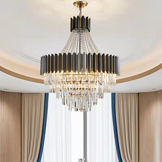Golden Era Grand Fountain Crystal Chandelier with Black Tube for Staircase/Foyer/High-ceiling