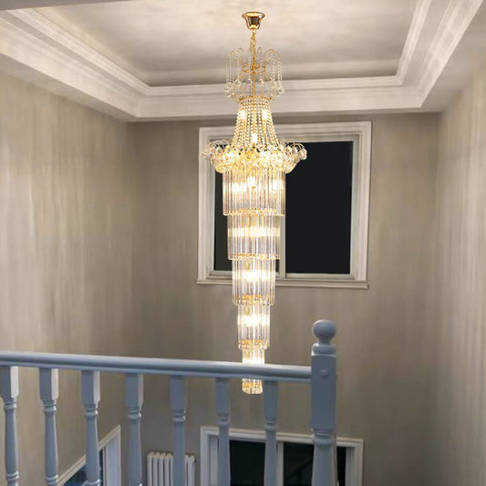 Extra Long Gold Luxury Multi-tier Crystal Chandelier for Living Room/Foyer/Stairs/Hotel Lobby