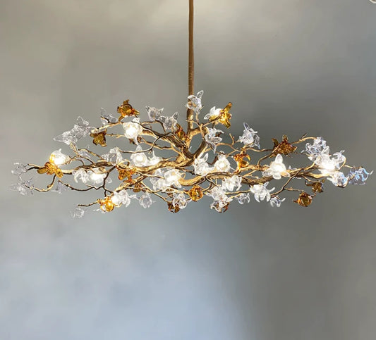 Designer Recommended Art Design Brass Branches Flower Glass Chandelier for Living Room/Dining Room/Kitchen Island