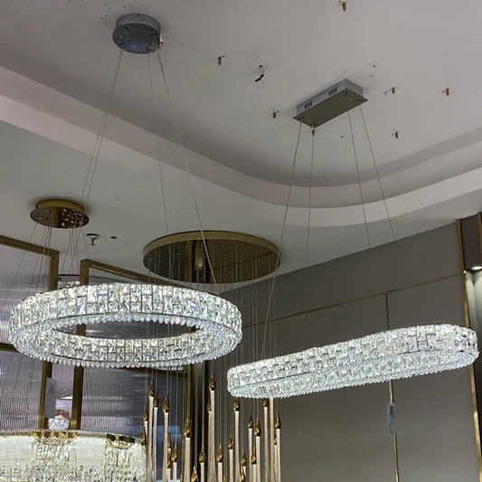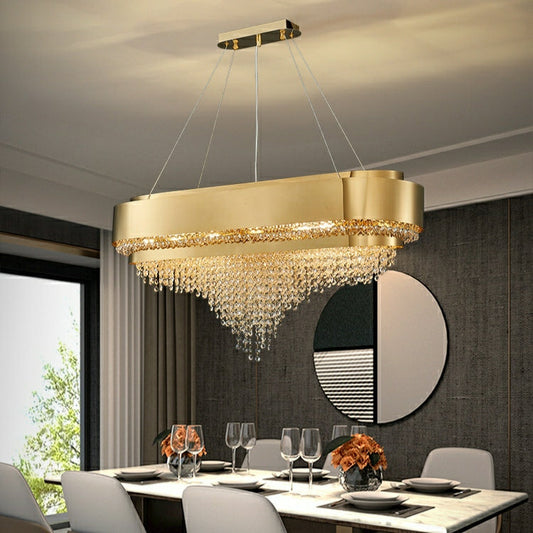 Light Luxury Round/Oval Spliced Crystal Chandelier for Living/Dining Room/Kitchen Island