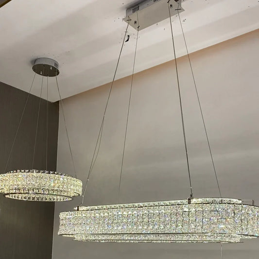 Chrome/ Silver Decorative Kitchen Island Lighting Crystal Rectangle Chandelier For Long Dining Table Round Pendant Light Fixture For Living Room