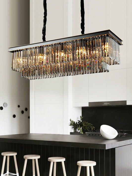 Fashion Kitchen Island Crystal Chandelier In Black/ Smoky Gray Finish Two Tiers Rectangle Chain Pendant Light/ Lamp For Long Dining Table