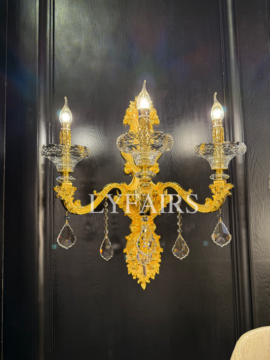 Baroque Revival Crystal Wall Lamp with Industrial 24K Gold Color