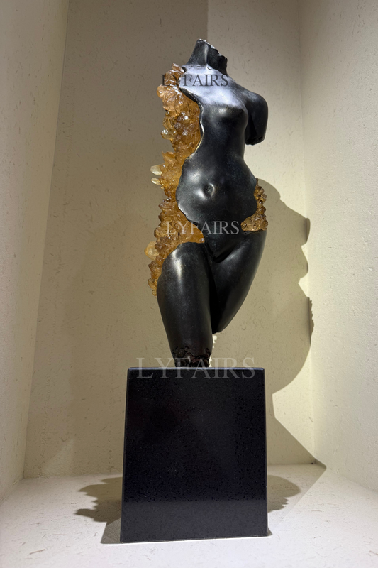 Shattered Beauty Classical Female Torso Sculpture Table Decor with Raw Crystals