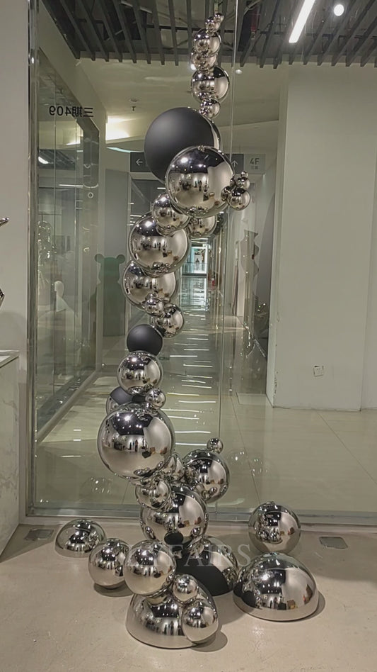 Sculptural Symphony of Floating Spheres in Polished Silver Elegance