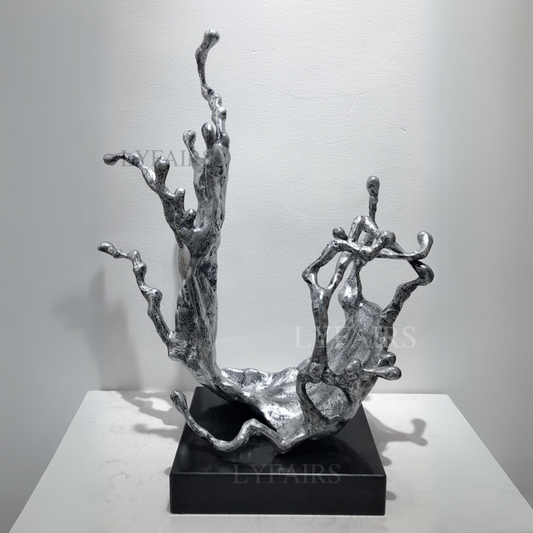 Modern Silver Abstract Sculpture On Black Stand