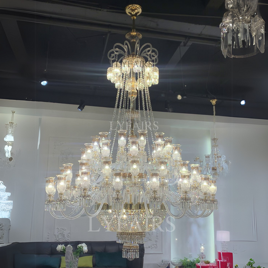Luxury Empire Multi-layer Crystal Chandelier for High-ceiling
