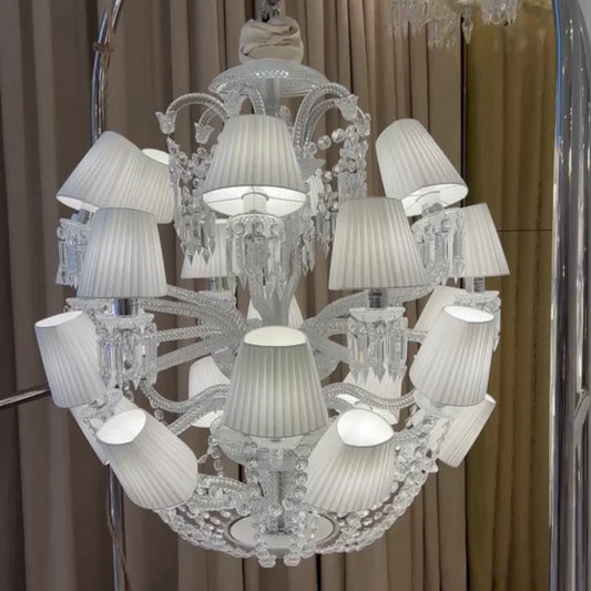 Luxury Globe Crystal Chandelier With Fabric/Crystal Glass Lampshades