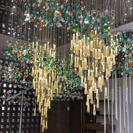Extra Large Floating Crystal Raindrop Colorful Stone Chandelier for Hotel/Restaurant/Villa