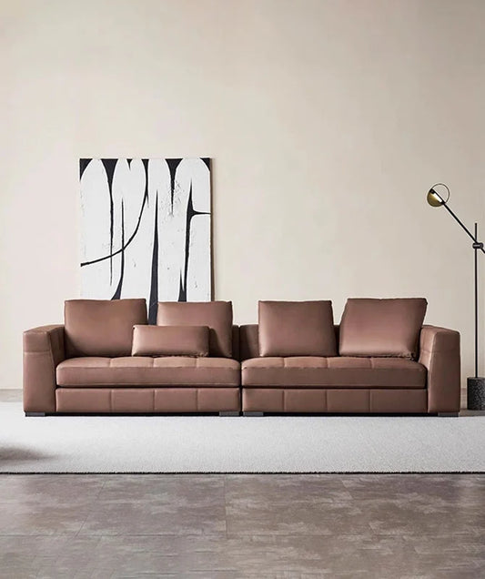 Vintage Simple 3/4/5 Seater Black Leather Straight Sofa