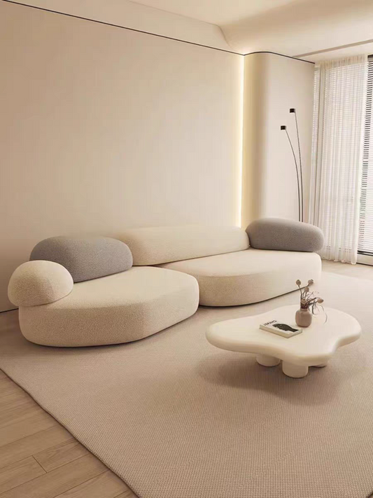 Cotton Linen Fabric Removable Washable Cream White Sofa Living Room Wabi-Sabi Style