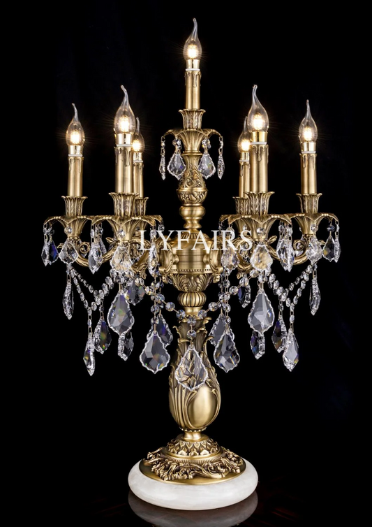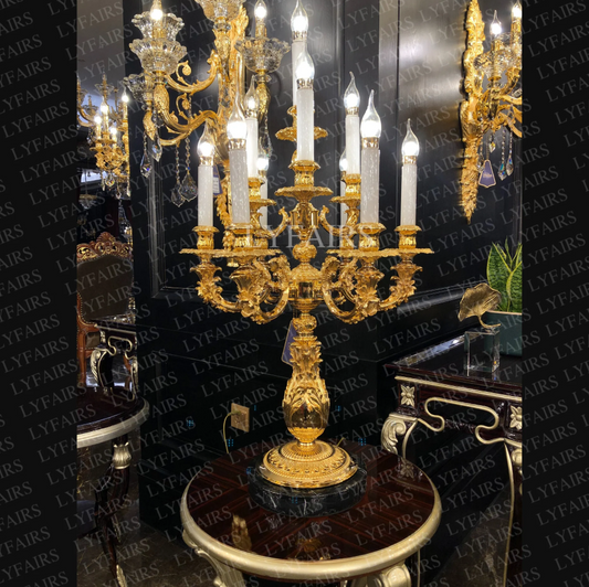 Luxury Vintage Top De-Waxed Crafted 10-Candle Brass Table Lamp